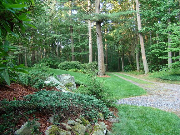 This sun-filled Acorn style contemporary is beautifully approached by a long driveway, surrounded by fabulous land (2.5 usable acres), thoughtful flower-filled gardens and mature landscaping. Pretty views abound in every direction. This home immediately captivates you with the walls of glass, cathedral ceilinged great room with fireplace, hardwood floors and new wall to wall carpeting throughout. Both interior and exterior have been freshly painted. All the works been done! Just move in and enjoy! Neighborhood Description Quiet country road in wooded area, secluded with occasional views of wildlife.