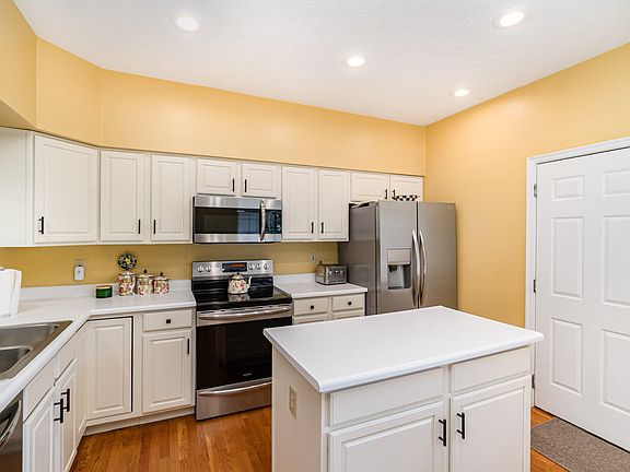 - Features: Window Treatments, Kitchen Island, Eat-in Kitchen, Recessed Lighting, Hardwood Floors