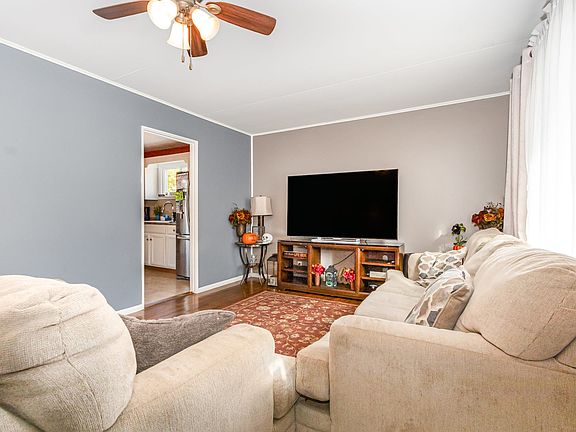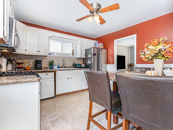 Cute home with 2 big bedrooms on the main level. Master bedroom with walk in closet. Hardwood floors in 2nd bedroom with living room. Eat in kitchen with stainless steal appliances all staying in the home. Finished basement with option for family room or 3rd bedroom. Basement also has a half bath and a huge laundry room washer and dryer included. Home has a huge fenced in yard with a patio and a detached 2 car garage. New HVAC system installed in August 2023. Home is being sold as is.