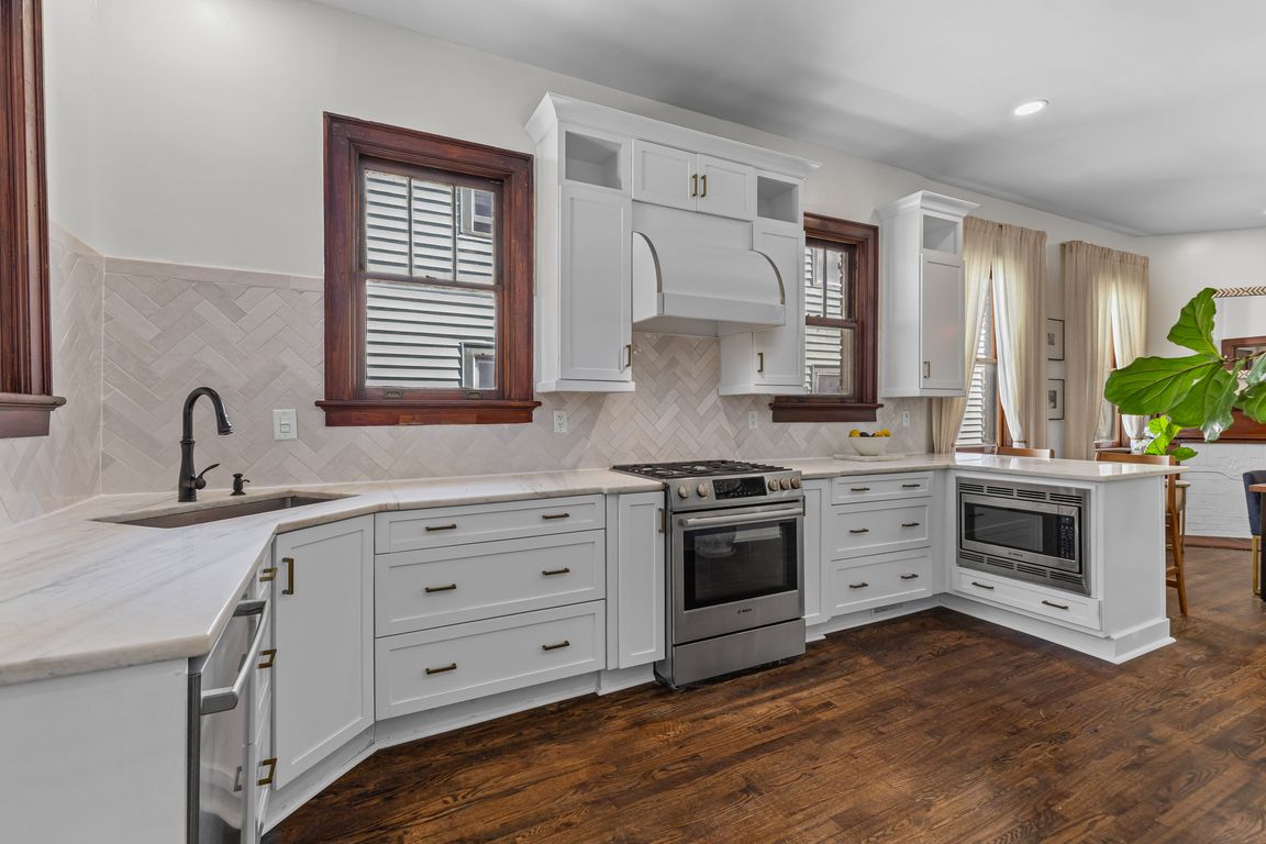 Cozy fireplaceFully renovated historic homeWarmly lit front porchRare off-street parkingCedar gablesLush landscapingEnglish garden