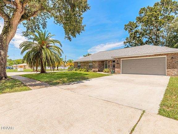 4-bedroom, 2-bath single-family brick home. Centrally located in beautiful Port Orange Florida. Situated on a spacious corner fenced lot. This home features modern amenities including solar panels (owned not leased) which significantly reduce energy bills. Newer roof replaced in 2021, including new hardware for the 20 solar panels. Hybrid water heater (2022), combined gas and/or electric stove, along with 2 solar attic fans for optimal efficiency. Newer washer and dryer. The thoughtfully designed split floor plan is ideal for families or multigenerational living. The extended cement driveway accommodates large vehicles with ease. Large, fenced corner lot. Glassed lanai for all weather enjoyment, as well as a separate slab for BBQ or sunbathing. Newer shed, washer and dryer. With its excellent location and family-friendly features, this home is an exceptional opportunity for first-time buyers or investors. Preferred Port Orange school district. Minutes to the river, beach, shopping highways, and colleges/universities
