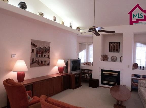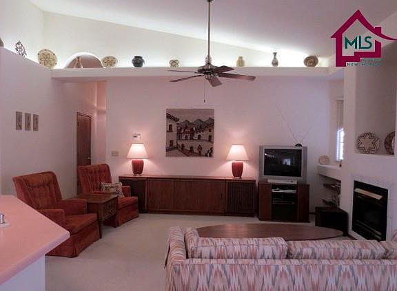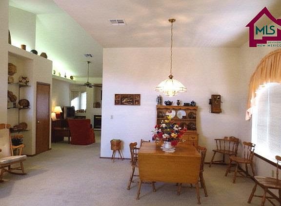 This is an immaculate, well-maintained home with 4 bedrooms, 2 full baths, 2 living areas, 2 eating areas and a nice-sized island.... Approximately 2054 square feet with built-in shelving and uplighting in this beautiful home! Backyard is large and has established, large trees with a covered back patio. Master suite has french doors, a sliding door to the back patio, and a large master bath with double sinks. The home has lots of natural lighting along with an open floor plan! Refrigerated air conditioning, blinds on all the windows, and a gas fireplace in the den. Located on a quiet cul-de-sac, close to parks, shopping, medical facilities, and restaurants. Call Laurel Coyle at 575-650-3500 to make an appointment to see this beautiful home.