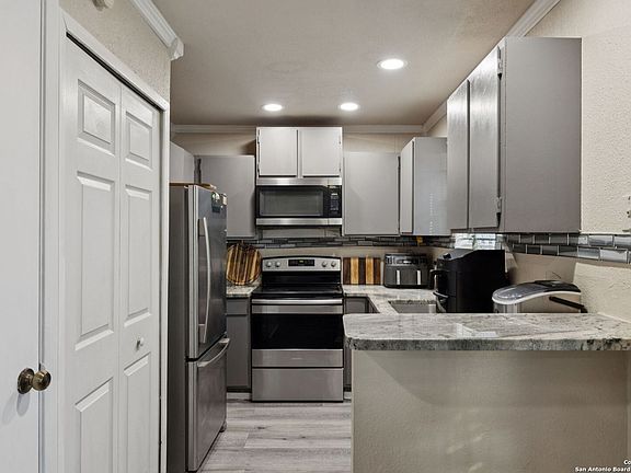 You ever walk into a place and instantly feel at ease? That's this condo. The layout is open, bright, and simple no wasted space, just clean lines and a fresh modern feel. The kitchen shines with stainless steel appliances and stone-style counters, opening into a living and dining area that make the most of every square foot. Both bedrooms are comfortable with good closet space, and the updated bath has stylish tile and a walk-in shower that feels like a mini spa. Step outside and you're minutes from everywhere: downtown, the airport, North Star Mall, the Medical Center, and some of the best restaurants in San Antonio. It's the perfect spot for someone who wants low-maintenance living in the middle of it all move-in ready, clean, and cared for.
