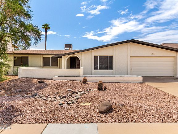 No HOA! This Mesa home offers timeless character & space for watching football games, celebrating holidays, and gathering with friends. The kitchen includes a pantry, ample counter & cabinet space, and opens to the family room with its charming brick fireplace. A formal dining room and separate living room add versatility. Bedrooms are set apart on one side of the home for privacy, with living areas on the other. Outside, enjoy a refreshing pool, low-maintenance yard, & storage shed. The primary bath was remodeled in 2023 with updated shower, flooring, and toilet. Additional updates include fresh interior & exterior paint and newer A/C (2020). In an established neighborhood near top-rated schools, shopping, dining, and easy access to the 60 & 101, this home blends comfort and convenience.