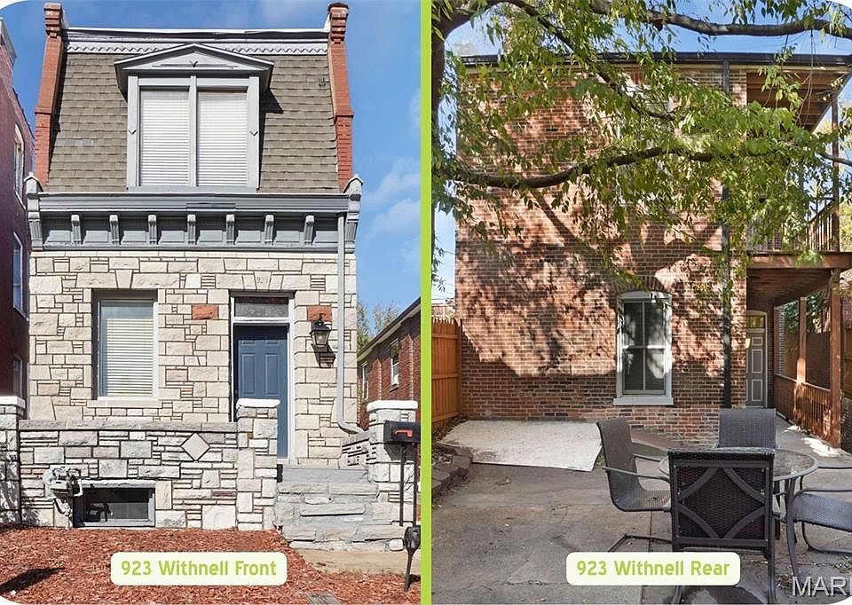 TWO homes. ONE lot. ENDLESS POSSIBILITIES! (Yes, that did need to be in all caps) Welcome to this truly rare find! 923 Withnell is tucked into a charming pocket of the Soulard neighborhood where you can enjoy being a patron to the walkable local establishments *without* having those patrons walking in your yard! Crazy, right?! And that’s not even the rare part! This property features TWO SEPARATE homes on one lot. Both have 2 bedrooms, 1 1/2 bathrooms, and private entrances. While I’d love to start you off with the belle of the ball, let’s keep things in order and give the adorable runner-up a chance: