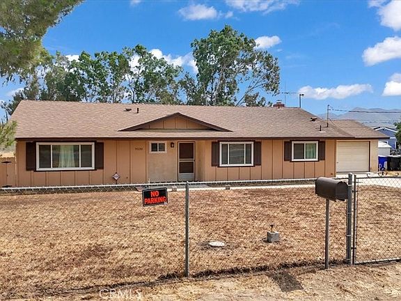 SPRAWLING ONE STORY - 3 STALL BARN AND STORAGE GALORE. Open concept. Wonderful high soaring ceilings. New carpet and flooring. Kitchen with peninsula counter tops that open into the living room. Fantastic back family room with fireplace over looking almost an acre of property with views of pasture and colorful vibrant flowerbeds with very unique plants. Covered backyard patio for relaxing in the serene quiet. The primary suite has a unique open counter and vanity for convenience. The 3 stall barn is sturdy and with a front and back access and padlock turnaround in front for shade on summer hot days and rainy days. The back of the property has access to horse and hiking trails. The views and distant landscape are just breathtaking to gaze upon.