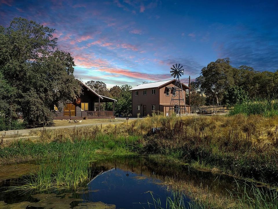 Work, live and recreate all on this one amazing property in Angels Camp! Everything you've ever dreamed of on one beautiful property...incredible 4 bdrm, 3 bth 2197 sq ft remodeled Log Cabin home, two ponds (one fully stocked with fish), a drive through shop with car lift, Barn with rooms upstairs and down and two big roll up doors, Additional garage with room for another living unit upstairs, two wells on the property. 6.2 useable acres, fenced and cross fenced perfect for raising livestock and horses. Zoned A1-Ag Mixed Use Zoning,2 meters on property, 1 commercial (barn/offices/shop),1 residential (home). RV Space and full hookups and semi accessible. Enjoy the fruit trees and vines: plum, pear, cherry, pluot, fig, grape, peach, apple, olive. Log home is stunning with newly remodeled kitchen and bathrooms complete with granite counters, SS appliances, cathedral ceiling with master bedroom loft upstairs. A MUST SEE PROPERTY!! Info deemed reliable but should be verified.