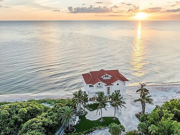 Gulf and Bay! Gulf front beach house with deeded dock on the bay and adjoining buildable lot of approx. ±20,000 sq. ft. Southernmost residence on Siesta Key. Located where Siesta Key connects with Casey Key featuring miles of unspoiled beach to the south, this home beckons the free spirit who wants to live on the beach with unsurpassed privacy. To the south is a nature preserve, to the west is the Gulf, and to the north and east are a handful of homes along the gated, private road. The crystal clear waters of the Gulf of Mexico and sunny Sarasota skies are the ideal backdrop for this Siesta Key beach house. Mindful of its seaside location, the entire home is built on concrete pilings embedded into the underlying bedrock and built of concrete block from top to bottom with reinforced-concrete floors. The home is protected by a 25-ft. deep seawall - 7-ft. above sea level and 18-ft. down to the bedrock. Inside, tasteful Turkish limestone floors, high ceilings and wall-to-wall sliding glass doors create a well-layered home that befits its stunning waterfront location. Living areas include a sizable game room and sauna on the ground floor; and formal living, formal dining, kitchen, family room, butler's pantry and office on the first floor. The second floor is set aside as the family's private retreat with master suite, three guest suites and laundry room. All bedrooms have sliding glass doors to a wrap-around balcony overlooking the Gulf. A bonus loft makes up the third floor. This home also has an elevator and deeded dock on the bay. Quietly removed from the ordinary, yet within easy reach of in-town amenities, living here welcomes you to paradise every day!