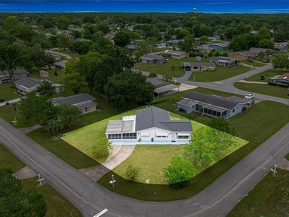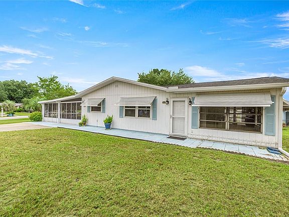 One of the largest homes in Pine Run – over 1,400 sq ft of living space! This move-in ready 2-bedroom, 2-bathroom home features a brand new roof installed in September 2025, a brand new hot water heater, and has been freshly pressure washed on the exterior. Carpets and interior have been professionally cleaned as well! Enjoy a spacious living area that opens to a large bonus room via sliding glass doors – perfect for relaxing, entertaining, a craft space, or even an extra family room. The bonus room also includes a Murphy bed, ideal for guests that easily tucks away when not in use.The kitchen is charming and functional, offering a brand new range, stainless steel refrigerator and microwave with plenty of cabinet space. Both bedrooms are generously sized. The home features two full bathrooms — one with a walk-in shower, and the other with a tub/shower combination, providing flexibility and convenience. Additional features include a large, screened-in 2-car carport with sliding screen doors and the benefit of a corner lot location for added privacy.Pine Run is a sought-after 55+ community conveniently located just off SR 200 – close to shopping, grocery stores, medical facilities, restaurants, and more.