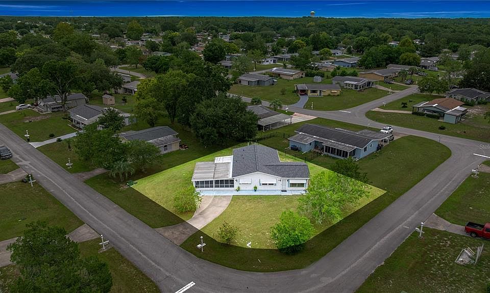 Lucky for you this home is back on the market - One of the largest homes in Pine Run – over 1,400 sq ft of living space! This move-in ready 2-bedroom, 2-bathroom home features a brand new roof installed in September 2025, a brand new hot water heater, and has been freshly pressure washed on the exterior. Carpets and interior have been professionally cleaned as well! Enjoy a spacious living area that opens to a large bonus room via sliding glass doors – perfect for relaxing, entertaining, a craft space, or even an extra family room. The bonus room also includes a Murphy bed, ideal for guests that easily tucks away when not in use.The kitchen is charming and functional, offering a brand new range, stainless steel refrigerator and microwave with plenty of cabinet space. Both bedrooms are generously sized. The home features two full bathrooms — one with a walk-in shower, and the other with a tub/shower combination, providing flexibility and convenience. Additional features include a large, screened-in 2-car carport with sliding screen doors and the benefit of a corner lot location for added privacy.Pine Run is a sought-after 55+ community conveniently located just off SR 200 – close to shopping, grocery stores, medical facilities, restaurants, and more.