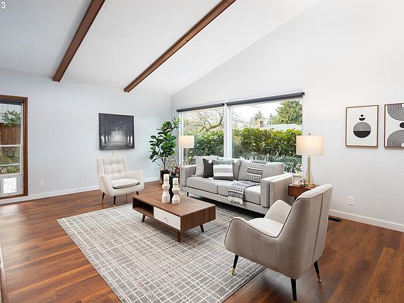 Better than new! Mid-Century Mod ranch completely remodeled with sleek & stylish upgrades including designer kitchen & bath remodels, wine fridge & wet bar, flooring, deck & gazebo. All major systems updated such as HVAC, tankless HW Htr, plumbing, electrical, roof, skylights, & windows. Request features sheet! Enjoy the private, entertainers yard w/ awesome Catio. Desirable close-knit Garden Home/Whitford community close to Trader Joes, shopping, restaurants, parks & golf. WA County Taxes!