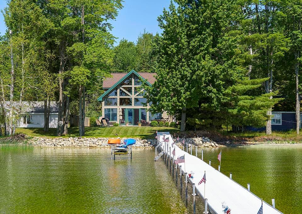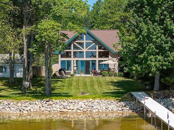 Well built, all-season home on the western shores of Douglas Lake for sale! Enjoy amazing sunrises over the lake each morning. Upon entering this beautiful property you will see its well designed. The log interior gives it a very comfortable ''UP NORTH'' feeling. The open concept living room is perfect for an intimate gathering with family & friends around the stone fireplace. The main floor primary bedroom includes a large walk-in closet and a huge bathroom with a custom shower and jetted tub. Upstairs you will find two guest rooms with their own private full bathrooms and a large loft.