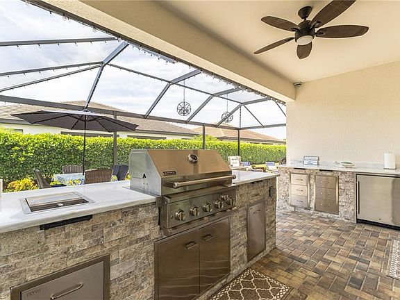 Welcome to 9231 Shadow Oak Lane, Naples, FL 34120 – a meticulously maintained and thoughtfully upgraded residence in the highly sought-after Bent Creek Preserve. Owned by a contractor and upgraded with precision and care, this 4-bedroom, 3-bath Trevi model offers 2,032 sq. ft. under air and over 800 sq. ft. of expanded outdoor living—perfect for embracing the laid-back Florida lifestyle. Step inside to a seamless open floor plan featuring upgraded kitchen cabinetry, an eye-catching gold-accented backsplash, a custom kitchen island, and a spacious walk-in pantry with built-in shelving. The split-bedroom layout includes two ensuite bedrooms, with the primary bath offering a luxurious soaker tub, separate shower, and double vanity. Enjoy Florida living at its finest in the expansive, panoramic-screened lanai—ideal for entertaining. The custom-built outdoor kitchen features stack stone finishes, matching pavers, high-end stainless steel appliances, and elegant granite countertops. Relax with family or host guests with ease thanks to the outdoor TV, built-in Sonos sound system, and upgraded outdoor lighting including perimeter spotlights that highlight the home’s lush privacy hedges and beautifully landscaped backyard. Bent Creek Preserve is a gated, amenity-rich community featuring tennis, pickleball, resort-style pool, clubhouse, and fitness center. Conveniently close to shopping, dining, entertainment, and SWFL’s renowned beaches—all in a non-flood zone.