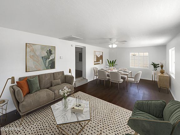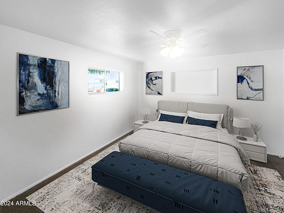Welcome to a unique Peoria home where modern comfort meets artistic design. Freshly painted in soothing neutral tones and featuring new flooring throughout, this home provides a serene retreat with a primary bedroom that offers double closets for ample storage. The private, fenced backyard includes a spacious patio, perfect for relaxing or entertaining under the Arizona sun. What truly sets this property apart is the mobile trailer that encapsulates the home, providing a flexible space for training, work, or creative projects. This innovative feature adds both versatility and function, making the property ideal for those seeking more than just a place to live. Experience the charm and uniqueness of this one-of-a-kind home today!