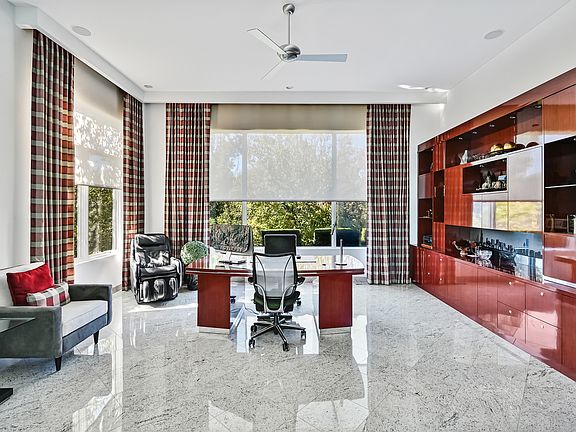 Indulge in an elegant contemporary masterpiece nestled within the exclusive gated community of Falling Water in Burr Ridge. This architectural gem is surrounded by breathtaking vistas of towering heritage trees and serene waterfronts, offering a sanctuary of tranquility and luxury. The area is a picturesque tableau of shimmering ponds, graceful swans, and lush greenery. Upon entering the foyer, you're welcomed by the dramatic rotunda/great room, showcasing soaring 30-foot ceilings that amplify the sense of grandeur. The main floor exudes sophistication with its open-concept design, seamlessly blending modern living with stunning pond views. Cozy fireplaces grace all three levels, with two offering a dual-sided warmth. The heart of the home reveals an exquisite Italian-inspired kitchen, featuring Snaidero cabinetry and high-end Miele and Sub-Zero appliances-an epicurean's dream. Ascend the curved glass floating staircase to discover expansive bedroom suites, each a private retreat with walk-in closets, sitting areas, and opulent full baths. The second-floor boasts a sprawling veranda, perfect for entertaining or savoring sunset cocktails. This versatile space also invites peaceful meditation and yoga sessions. The fully finished walkout lower level is a haven of entertainment and relaxation, complete with a home theater, sophisticated wet bar, secondary kitchen, and a soothing spa area with fitness amenities and a jacuzzi. A four-car garage with epoxy floors and radiant heating complements this luxurious abode. Conveniently located near the vibrant Burr Ridge Village Center and major highways, this residence perfectly balances luxury with accessibility. Every detail has been meticulously curated, sparing no expense to ensure unparalleled opulence. Seize this once-in-a-lifetime opportunity to own this exquisite home.