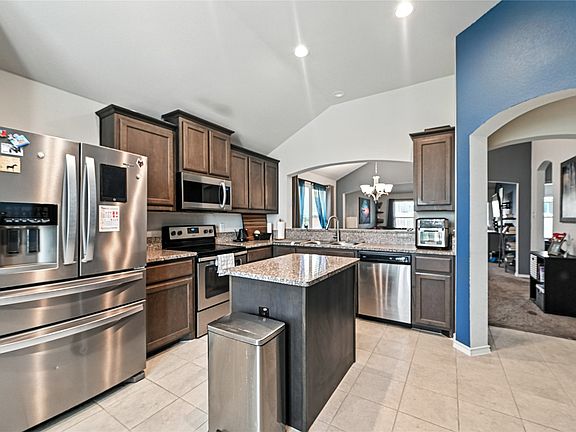 As soon as you pull up, the first thing you notice is the little greenbelt right across the street, a nice spot for kids to run around or to take the dog out. Walking inside, the kitchen immediately grabs your attention at the front of the home. It’s bright, open, and has plenty of room to cook and gather. You can sit down for a casual meal in the eat-in area or enjoy dinner in the dining room just outside the kitchen. From the kitchen, you can look straight into the living room, which is large enough to fit a big sectional, perfect for movie nights or hosting friends. The layout feels connected, but still gives each space its own purpose. The oversized primary suite is a perfect getaway with a soaking tub and separate shower. The two secondary bedrooms are just right for kids, guests, or even a home office. Step out back, and the yard is such a manageable size, enough room to enjoy without spending your whole weekend doing yard work. The patio is a great spot for grilling or relaxing at the end of the day. This home is easy to live in and easy to love.