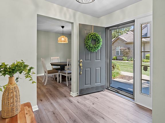 PRIVATE WOODED BACKYARD + SUN ROOM + GROUND LEVEL & END UNIT + UNBEATABLE LOCATION = PERFECTION. Enjoy living in coveted Muir Woods neighborhood - a peaceful drive in with mature trees and great roads. This is the end unit - ranch, all 1-level floorplan - with raised ceilings & abounding natural light in tall windows on either side of gas fireplace is move-in ready. Excellent use of space capitalizes on the serene wooded back yard & side yard. Smart condo 2 bed, 2 bath + office & sunroom layout includes Primary Bedroom w/ 2 walk in closets, 2 sinks, separate water closet room & large bath ensuite area, Bedroom 2, & Office w/ double glass French door. Kitchen has granite tops, large pantry and backsplash. Home has new flooring - both new carpet + LVP. 2 car attached garage with no steps. Enjoy the community pool, tennis/pickleball court, clubhouse, and lot location nestled into the neighborhood with low car traffic. Muir Woods has a social committee and organized events like pickleball & luncheons, you can be as social private as you prefer. Excellent Fishers location:easy access to I-69, the Nickel Plate trail, Top Golf, amazing restaurants in The Yard, shopping is endless, and new Fishers Event Center. A great place to be both tucked away and a part of something vibrant. Welcome Home!