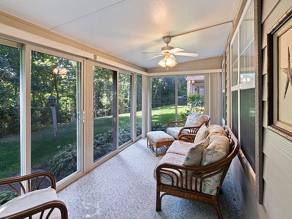 Gas fireplacePrivate wooded backyardSide yardSun roomRaised ceilingsGranite topsAbounding natural light