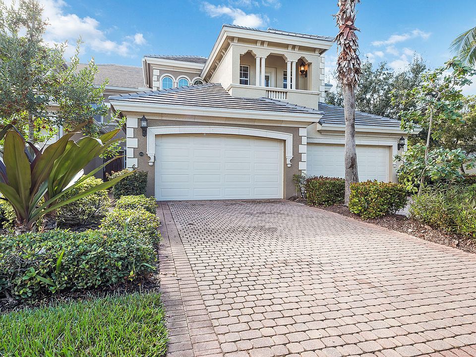 Stunning lake views grace this amazing 3 bedroom + den, 3 full bath, end unit, coach home with a private elevator and 2 car garage. Located in the Varenna community in the award-winning Fiddlers Creek this home has it all! Luxurious features include plantation shutters, crown molding, custom light fixtures, tile flooring in the main living areas, hard wood flooring and more. This furnished home with large sliding glass doors, offers plenty of natural light and a spacious floorplan. Making entertaining easy, the living room opens to the formal dining room, and the family room opens to the kitchen. The well-appointed kitchen with breakfast nook, boasts an ample amount of cabinetry, granite countertops, breakfast bar, SS appliances, gas cooking, and a pantry. The inviting master suite provides private lanai access through large sliding doors, walk-in closets, recess lighting, and an en-suite with dual vanities, large soaking tub and a separate walk-in shower. The additional guest bedrooms with en-suite bathrooms provide privacy for your guests and one offers access to the private balcony. The den provides a quiet area to work from home or could make an excellent area for extra guests to stay. An excellent place to have a nice family dinner, the balcony showcases serene lake views and makes for a peaceful relaxing area! Situated between Marco Island and downtown Naples, Fiddler's Creek allows residents to enjoy a multitude of local dining, shopping, beaches, and entertainment. Fiddler's Creek offers a state-of-the-art clubhouse with an enormous resort-style pool, golf, pickleball, tennis, and much more!