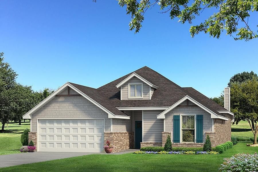 This Teagen floor plan includes 1,715 Sqft of total living space, which features 1,625 Sqft of indoor living space and 90 Sqft of outdoor living space. There's also a 390 Sqft, two car garage with an in-ground storm shelter installed. The timeless Teagen offers 3 bedrooms, 2 full bathrooms, 2 covered patios, and a utility room. The living room presents a corner gas fireplace surrounded by our stacked stone detail, wood-look tile, a ceiling fan, and large windows. The high-end kitchen supports a large center island, stunning pendant lighting, 3 CM countertops, a corner pantry, upgraded custom-built cabinets to the ceiling, modern tile backsplash, and stainless-steel appliances. The prime suite includes a sloped ceiling detail with a ceiling fan, windows, and our cozy carpet finish. The primary bath includes a walk-in shower, a free-standing tub, separate vanities, a private water closet, and a spacious walk-in closet! Need more storage? We’ve even included a built-in mudbench! The covered back patio offers a wood-burning fireplace, a gas line for your grill, and a TV hookup. Other amenities include healthy home technology, an air filtration system, a tankless water heater to provide endless hot water, R-44 insulation, and so much more!
