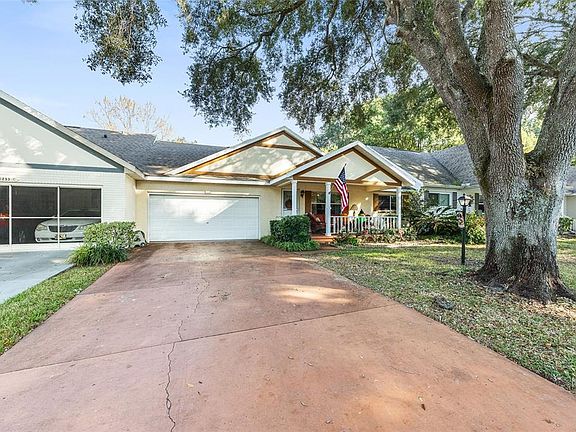 Welcome to this well-maintained 2-bedroom, 2-bath villa located in the highly sought-after On Top of the World 55+ community. This spacious, single-story home offers a comfortable layout featuring a combined living and dining area, an efficient kitchen with ample cabinet storage, and an enclosed Florida room that provides additional year-round living space. The primary suite includes a walk-in closet and an en-suite bath, while the guest bedroom and second full bath allow convenience for visitors or flexible use. The home also features an attached two-car garage and durable block-and-stucco construction. Situated within a 24-hour guard-gated community, residents enjoy access to a wide range of amenities including multiple recreation centers, fitness facilities, pools, clubs, and organized activities. Landscaping, exterior maintenance, and common-area care are included through the association, offering a low-maintenance lifestyle in a well-established neighborhood. This villa provides an excellent opportunity to enjoy the amenities and lifestyle offered by one of Ocala’s premier active-adult communities.