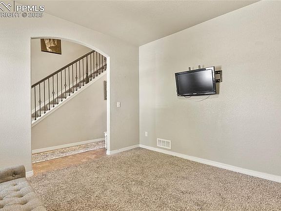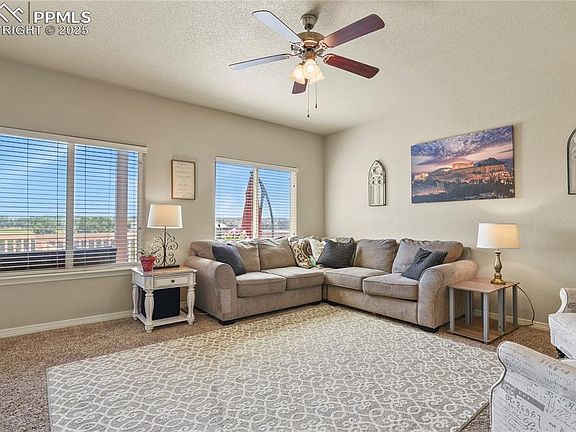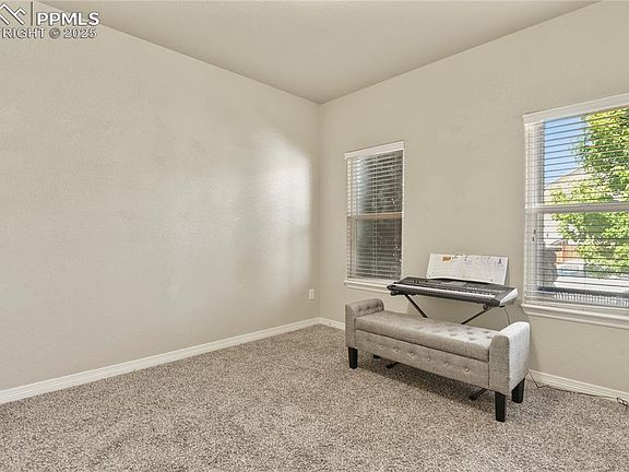 This gorgeous home has a great floor plan on the main level. Once you enter the home there is a front sitting room/office on your right, with the stairs to the upper level on your left and high ceilings above. As you continue into the home there is a carpeted living/great room that opens up into the kitchen with granite counters, wide island, 42" cabinets, wood floors, and dining room which has a door to the deck. The main level walks out to a nice deck, overlooking wildlife filled expansive views of open space and Jimmy Camp Creek. On the upper level you will find four large bedrooms, including the huge master bedroom with a sitting area and lots of windows and natural lighting. Laundry area is on the upper level so no more hauling it up and down the stairs. The basement has one additional bedroom and a very useful family room. There is a full bathroom in the basement, a half on the main level, and a full upstairs as well as the luxurious 5-piece master bath. And the finished basement walks out to the landscaped backyard which has fruiting trees. There is also a spacious 3 car tandem garage. There is a trail system behind the house. This house is also very conveniently located near Ft Carson, Peterson SFB, Schriever SFB, and is the perfect launching pad for going on many adventures throughout Colorado! New Roof with high impact shingles replaced this year. And brand new exterior paint!