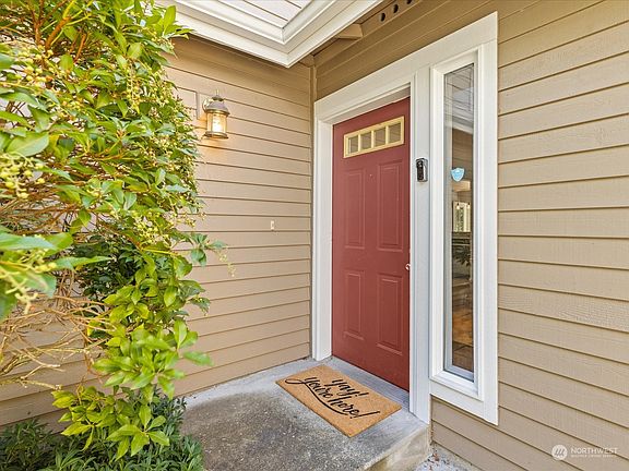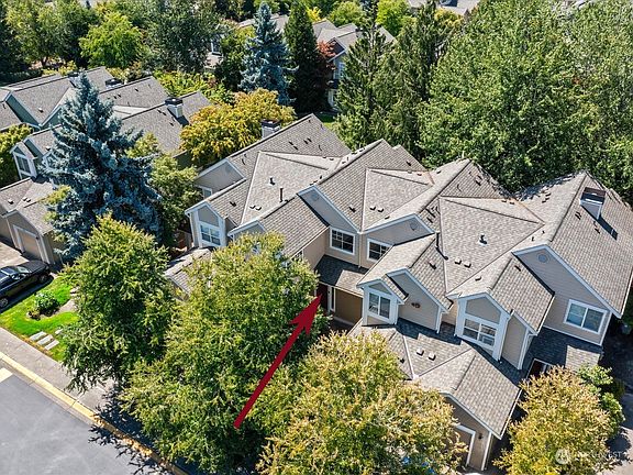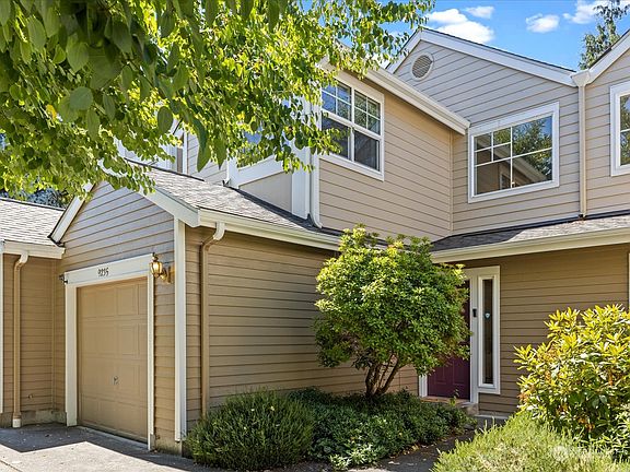Beautiful Rivertrail townhome in convenient and desirable Downtown Redmond! Updated home with striking black fireplace in the center of the spacious living & dining rooms. East facing with stunning double height ceiling entrance, providing an abundance of natural light. Ideal layout with both bedrooms + laundry room on the upper level. Oversized primary suite with vaulted ceilings, walk-in closet, updated bathroom, and room for a home office! Desirable and well kept neighborhood with strong HOA + access to Sammamish River Trail! New flooring/carpet+ updated kitchen (credit for brand new fridge of buyer's choice!). New furnace/H2O htr. Award winning Lake Washington School District! Private garage + driveway parking! HOA includes water/sewer.