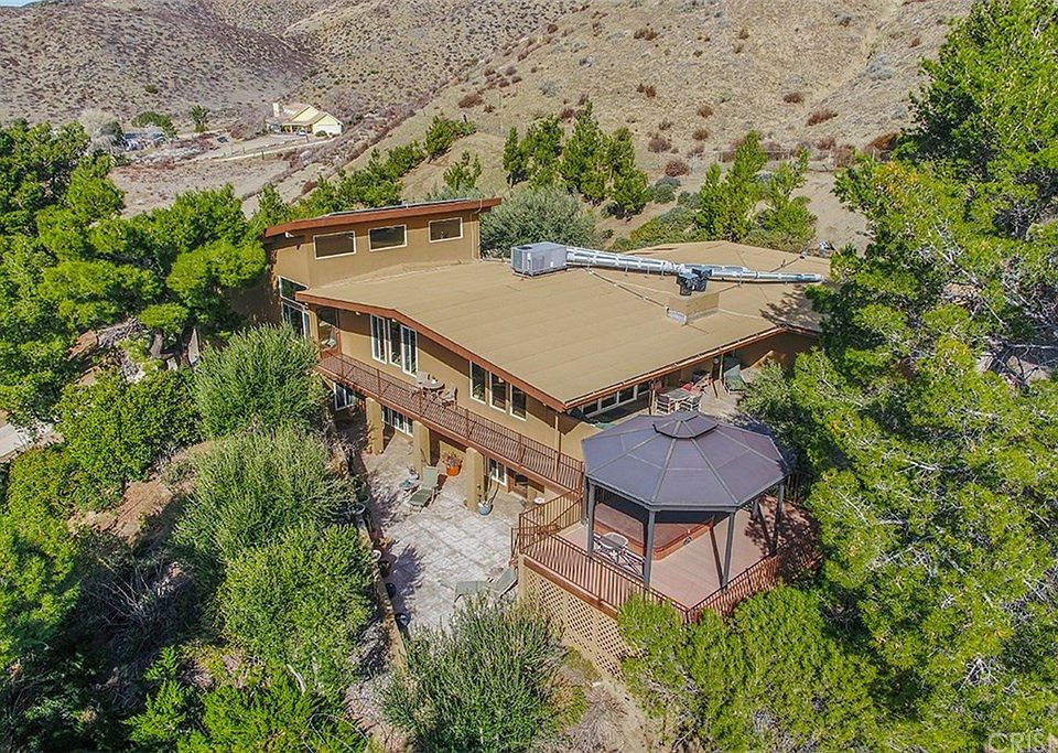 Greener pastures and just a few minutes away from big city life. Come to this private paradise for clean air, peace and tranquility and no congestion. Private gated contemporary mid-century modern home on 11 plus acres in! Breathtaking panoramic views! Large owned solar system. Walls of glass provide lots of natural light and views throughout. Open living room and dining area with fireplace and wood floors. Kitchen has granite counters, custom tile backsplash, stainless steel appliances, commercial GE Monogram refrigerator, wine fridge, two walk in pantries, lots of cabinet space and built ins with lights, breakfast bar and eat-in kitchen area with amazing vistas. The master suite features soaring ceilings, seating area, large jetted tub, walk-in shower, dual sinks and sauna to relax in plus private deck. Plus a private office/gym. Two guest bedrooms are on the opposite wing and two full bathrooms. Downstairs can be used as a private suite with its own family room with built ins, fireplace, office, full bath and private entry. A complete remodel! The outside of this home is your own private escape. Patios and decks can be found off of each level. Gazebo with spa and majestic views of the surrounding rolling hills and valley. Hike for acres in your own backyard. Large detached studio. Located in a designated AVA wine growing region yet close to major malls in the AV and SCV, local museum, performing arts center and restaurants. This is the home you have been waiting for!