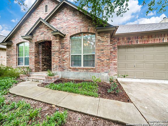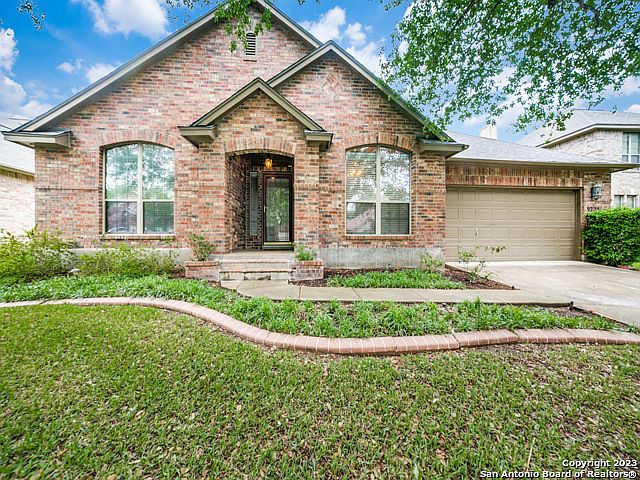 Stunning brick home located near Northwest San Antonio! Offering 4 bedrooms, 3 bathrooms, and a spacious kitchen. A lovely flex space welcomes new homeowners in and flows into the main living and kitchen combination area. The spacious living room boasts a gorgeous brick fireplace, ideal for gathering with friends and loved ones. Home chefs will appreciate the ample kitchen space including plenty of storage cabinetry, a spacious kitchen island, and excellent appliances. A breakfast nook provides the perfect space to enjoy a delicious meal with your loved ones. Step into a zone of tranquility in the primary bedroom offering a large bay window and a wonderful en suite bath with a garden tub, standing shower, and dual vanities. With three secondary bedrooms homeowners have endless options to use the space as best fits their needs. The home also includes utility space with a sink and plenty of storage space. Your own private oasis awaits in the backyard with a lovely covered patio and a mature shade tree. The home is conveniently located near shopping, dining, and entertainment. It's also close to major highways, making it easy to get around town. Don't miss this opportunity - come and take a look today!