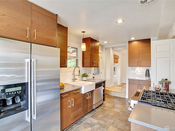 Gorgeous remodeled mid-century brick home in the heart of North Beach w/peek water views & abundant natural light. Living rm w/hardwood flrs, fplc & lg windows.Updated kitchen w/quality appl's, granite counters, tile flrs, eating nook & pantry. Updated bathrm's: newer vanities, flooring & tile. Private backyard w/covered deck. Lower level w/media rm, gas fplc, built-in office or Zoom rm, guest quarters w/lg bdrm & 3/4 bth. Fantastic neighborhood w/private beach access. 3+off street prkg+storage.