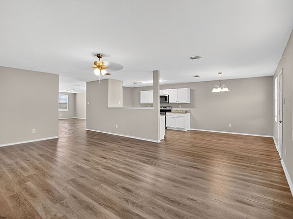 Beautifully maintained 4-bedroom, 2-bath home located in the Poynter Crossing community. This single-story property offers an open-concept layout with a spacious living area that connects seamlessly to the kitchen and dining space. The kitchen features granite countertops, stainless steel appliances, and a convenient breakfast nook. The primary bedroom includes an ensuite bath and a walk-in closet for ample storage. Luxury vinyl plank flooring runs throughout the main areas for durability and easy maintenance. Additional features include a 2-car garage, central HVAC, and a generously sized backyard. Conveniently situated near local schools, shopping, and major commuting routes, this home provides a functional layout suitable for a variety of living needs.