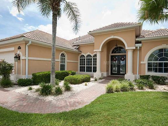 Absolutely gorgeous 2000 Addison Estuary with panoramic views of large lake. 3 bedrooms+den/2.5 baths/2 car+golf cart garage on .42 acre. Tile roof, paver drive/walk/extended patio, double door entry, lush landscaping, solar heated pool with waterfall, living/formal dining/family room plan, plantation shutters throughout, gas fireplace, crown molding, new 16 SEER A/C, water softener/purifier, built-in in den, 8 ft. doors, walk-in closets, kitchen pantry, granite counters, built-in wine rack, 42 cabinets, laundry room cabinets, all appliances included. 2948 living sq. ft., 3806 total sq. ft.