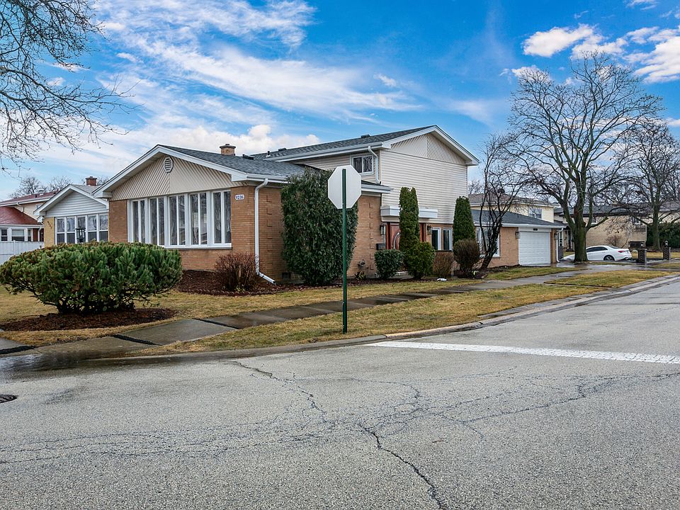 Welcome to this incredible brick corner split-level home, boasting approximately 2800 square feet of beautifully designed living space! This stunning property features five spacious bedrooms and three modern bathrooms, along with an attached garage for your convenience. Every detail in this home has been meticulously redone, from the new roof and furnace to the energy-efficient windows. As you step into the bright and inviting foyer, you'll be greeted by an elevated living and dining room enhanced by recessed lighting and gleaming hardwood floors. The gourmet kitchen is a chef's dream, featuring classic white cabinetry, elegant quartz countertops, and upgraded stainless steel appliances. The upstairs layout is perfect for families, offering four generous bedrooms, including a luxurious master suite complete with a spa-like bathroom and a walk-in closet. The main level includes an additional bedroom and a full bath, making it ideal for guests or multi-generational living. Step outside to the fenced-in backyard, perfect for entertaining or enjoying quiet evenings at home. Don't miss the opportunity to make this exceptional home yours!