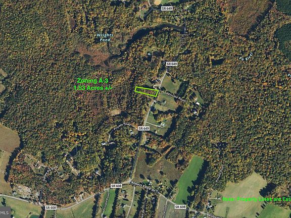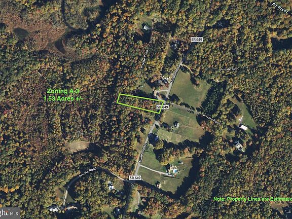1.53 Acre +/- Residential Building Lot in Spotsylvania (Spotsylvania County) *A3 Zoning (Agricultural) *Paved State Maintained Roads *Electric Available *Approximately 138 feet of Road Frontage *No Percolation Tests or Septic Reports Available *Lot Dimensions are estimated via GIS *House setback requirements - 30 ft from front property line, 10 feet from both side lines, and 35 feet from rear property line *Many uses allowed by right with this zoning such as recreation, residential and many more (Documents and Online Resources Available) *4 Minutes (3 miles) to Oakley Forest Wildlife Management Area (Wildlife Refuge) containing 4,459 Acres for hiking, camping, wildlife viewing and hunting *20 Minutes to Route 3 (Plank Road Shopping *25 minutes to Central Park Shopping Center *30 Minute Drive to Downtown Fredericksburg *Information is considered reliable but not guaranteed, all information to be verified by prospective purchasers. *Bring Your Builder or Ask for Recommendations. *Ready for your vision and enjoyment.