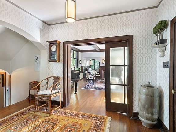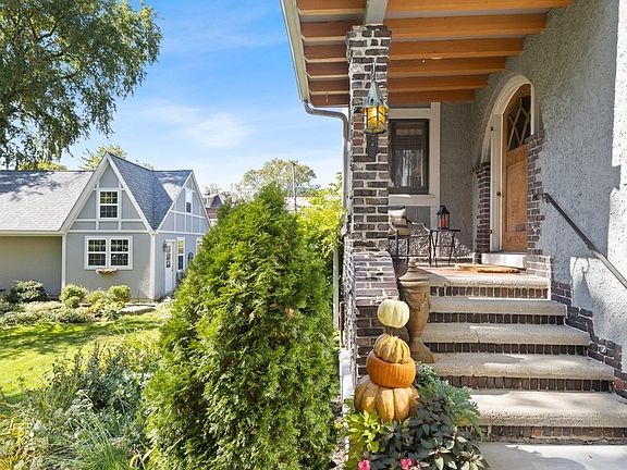 Designed by architect John Todd Hetherington this Stucco Arts and Crafts Beauty is truly an Oasis in the City! Situated on 2 lots measuring 100 x 187, the lovingly restored & updated home with 4bedrooms, 2.5 baths, both side & rear gardens, plus 3 car garage and original chicken coop, is a rare and treasured find. The renovation, restoration and updates honor the original craftsmanship & design of this gracious home. The generously sized foyer is but a glimpse of what awaits you. The living room was meant for entertaining. Features of this grand room include a glass paned pocket door, coffered ceiling, fireplace with vintage mantel, built in cabinets & window seats. Natural light is abundant thru the leaded glass windows, all with custom storms new in 2014. The formal dining room overlooks the side garden, here the coffered ceiling is repeated, and existing built-ins for extra storage. The den is nicely sized with new windows & storm door in 2019, it opens to a side porch leading to the yard. The original footprint is all that remains after the 2014 renovation of the gourmet kitchen. The elevated function is evident in the cabinetry with custom storage solutions, granite counters, stainless appliances & revamped breakfast nook overlooking the rear yard. The second floor offers a primary bedroom en suite with original white tile, fixtures, & built-ins, plus a walk-in closet custom designed in 2013. There are 3 additional bedrooms and full bath upstairs. On your way to the family room in the English basement complete with leaded glass windows & fireplace (decorative), you'll want to make a stop in the wine room steps off the main foyer. Not a detail was spared in the restoration of the exterior; from the romantic storybook roof (in keeping with the original design), gutters and stucco repair, to the custom colors & trim. The 3 car garage built in 2015, intentionally appears as a coach house from the street. This architecturally significant property awaits new owners to move in and enjoy! *Please note, what is designated as 4th bedroom is currently used as an office, wine room shows as library in the room dimensions below.