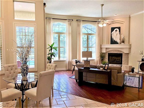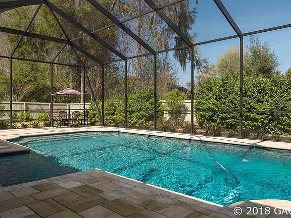 Great new price too. Elegant former Parade Pool home with circular drive - 5 BRs PLUS Study + 4 full baths and guest bath, in Award winning Haile Plantation, Prestonwood! Master suite with luxury bath, 2 bedrooms share full bath, EN SUITE AND Bonus room with private bath. Formal living and dining rooms along with wonderful kitchen open to gathering room, 12 ft high ceilings, HANDSCRAPED wood floors and a granite serving area! Gourmet kitchen is equipped with an upgraded GAS stainless steel stove, GRANITE counters and large island for prepping, new fridge and dishwasher. The great room features a cozy fireplace & huge windows to enjoy the sparkling pool surrounded by pavers. Spacious lanai includes SUMMER KITCHEN w/built-in gas grill, ideal for entertaining! Other features include plantation shutters, crown molding, surround sound, alarm system, built-in desk, fenced backyard. Around the corner from Publix n restaurants/shops. Zoned Chiles, Kanapaha, Buchholz, near UF/Shands/VA, I-75, Sta. Fe College and private schools. Haile Plantation Golf and Country Club are a golf cart ride away. Miles of trails for walking/biking/jogging and Parks to play in. Welcome Home!