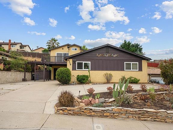 Opportunity Awaits in Santee! This spacious 4 bedroom, 3 bathroom home awaits its next chapter. Located in a prime area with easy access to Shadow Hill Park, Santee shopping centers, and convenient freeway connections, it offers a lifestyle of both comfort and convenience. Step inside, and you're greeted by a sense of possibility. The expansive living spaces are filled with natural light streaming through large windows, creating an inviting atmosphere for gatherings or quiet moments of relaxation. The layout flows effortlessly, offering both privacy and connectivity for everyday living. The 4th bedroom is upstairs with its own en suite bathroom and walk-in closet with balcony. The kitchen, the heart of any home, is ready for a makeover to reflect your personal style and culinary aspirations. With abundant counter space and storage, it holds the promise of becoming a chef's dream kitchen with modern appliances and stylish finishes. Outside you will find an easy low maintenance back yard with a covered patio and grape vines galore. Newer windows. Roof is appx 10 years old. Come make this home your own!