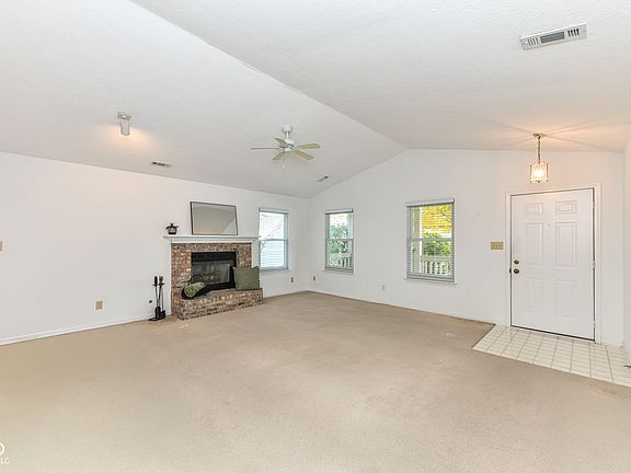 This CONVENIENTLY located well loved 1620 sq ft RANCH with cozy front porch has an open concept great room that flows to kitchen. The great room has a gas fireplace. The EAT IN kitchen has a pantry and all kitchen appliances are included. Washer, Dryer and Water Softener stay too! Each bedroom has a "walk-in" closet. The primary bathroom has a double bowl vanity and linen closet. Back yard is fairly "private", partially fenced and has room to run and play. Nickel Plate Trail, Fishers District, Fishers Event Center, schools and shopping are all very close! Don't miss this gem! Easy to show!