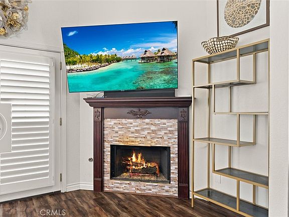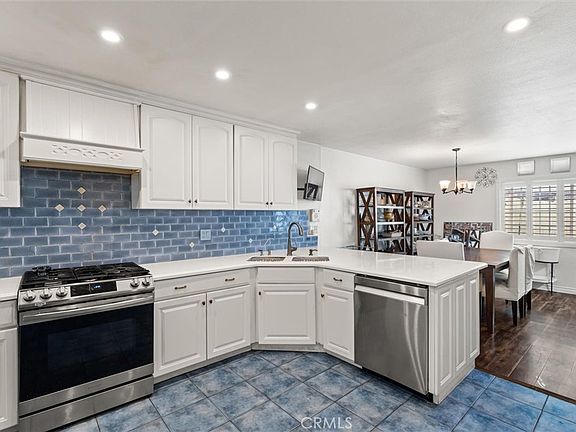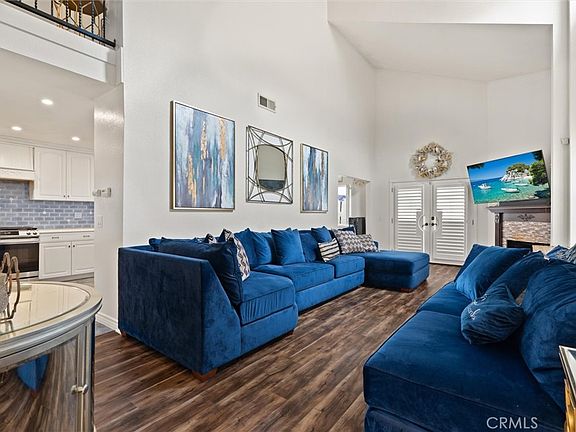 Presenting an outstanding central location in Bellflower, this turnkey home offers style, custom upgrades and generous room to grow. Nearly 1,728 square feet, the open-concept design features three bedrooms, two- and one-half baths, and a versatile loft. An entry with custom stained-glass window leads to an impressive living room with dramatic double-height ceiling, French doors opening to the backyard, and a custom corner fireplace, making the area perfect for relaxing, entertaining, or kicking back with friends on movie night. The kitchen is equally impressive and shines with solid-surface countertops, a large peninsula that is great for serving and food prep, a custom sink, dining area, white cabinetry with crown molding, a full tile backsplash, spacious pantry, recessed lighting, adjacent interior laundry room, and upgraded stainless steel appliances including a Samsung French door refrigerator with LCD display. An attached two-car garage with direct access is featured on this level, and the driveway accommodates off-street parking for two more. The powder room showcases an elegant custom vanity, and second-floor baths are appointed with custom sinks. Enjoy a private ensuite bath and two closets in the primary suite. Additional upgrades are led by plantation shutters, tile and vinyl-plank flooring, and elegant lighting fixtures. Summertime barbecues and evening cocktail parties will be a delight in the backyard, where a brick patio, retractable awning and lifelike turf are on display. Convenient to major freeways, downtown Los Angeles and beach cities, the home is just moments from schools, parks and shopping center