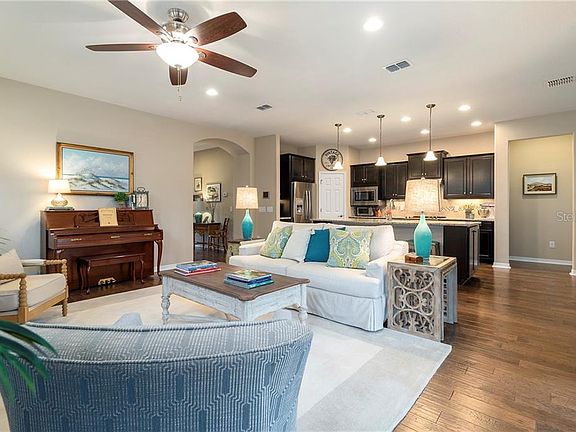 Fabulous Summerwood 3/2/2extended garage on a private lot with a tree line and meadow beyond. This home is incredible and has all the upgrades you could imagine. 3 full bedrooms + den. Enter thru 8' full decorative glass door, engineered wood floors, rounded corners, brushed nickel hardware, upgraded cabinets throughout, tile backsplash, upgraded SS appliances, pendant lights, additional recessed lighting, additional coach lights. Walking thru to the sunroom and then patio will let you enjoy the privacy while the Florida weather provides some of the nicest days and evenings you could ask for. This home delivers on everything and let's you move right in and avoid all the building and renovation stages so you can start enjoying the lifestyle immediately. Come take a good look at what your money will buy!!!!!