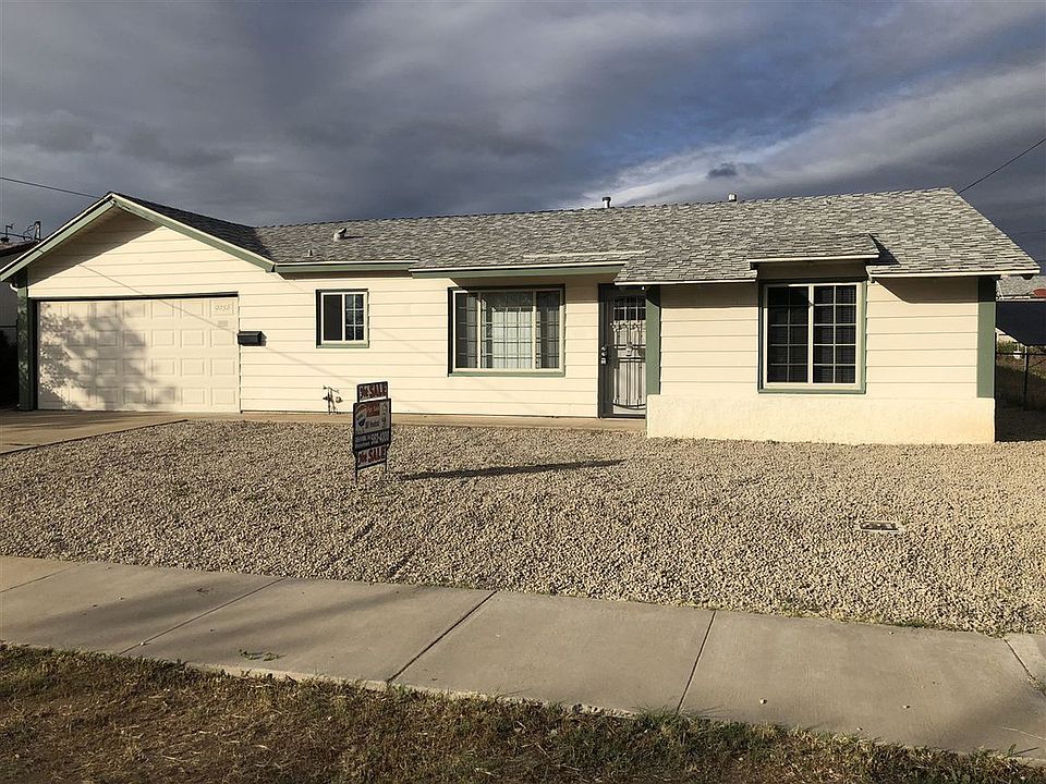 Move in Ready! Security screen door leads to this beautifully renovated home complete with cork floating floors, fresh paint, ceramic tile floors, updated bath & kitchen with marble counter tops, stainless steel Bosch dishwasher & new stove. French doors open to covered patio slab & large usable yard. Plus insulated exterior walls, insulated roll up garage door with electric opener, finished garage, pull down attic access steps, central heating & air conditioning.
