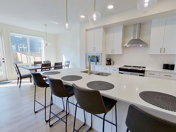 Located in the beautiful area of Orchards in Southeast Edmonton, near the airport, parks, shopping, and more, this stunning 1,978 sq ft home features a fully landscaped yard with a deck, an open-concept main floor, 4 well-sized bedrooms and 2.5 bathrooms. Built in 2022, the main floor of this modern home features a gorgeous open kitchen with a large island, a living area with a fireplace, and 9 ft. ceilings. The second floor features a stunning primary suite with a spa-inspired en-suite, including a large soaker tub, standing shower, and 2 sinks, and a large walk-in closet. On the second floor, there are also 3 spacious guest bedrooms, an additional bathroom, laundry area, and a lounge/theatre room. The basement is unfinished, with a side entrance that is ideal for developing a rental suite or entertainment area. The rear of this home faces south, featuring large windows that allow in plenty of natural light. This home is in a family-friendly area.