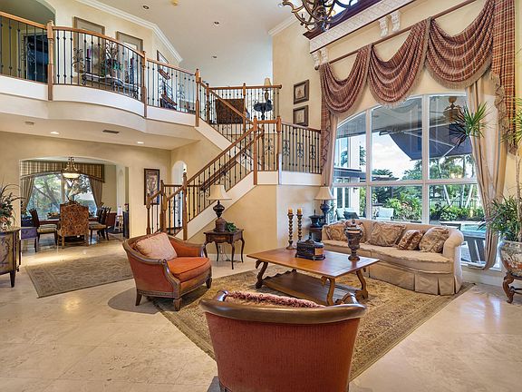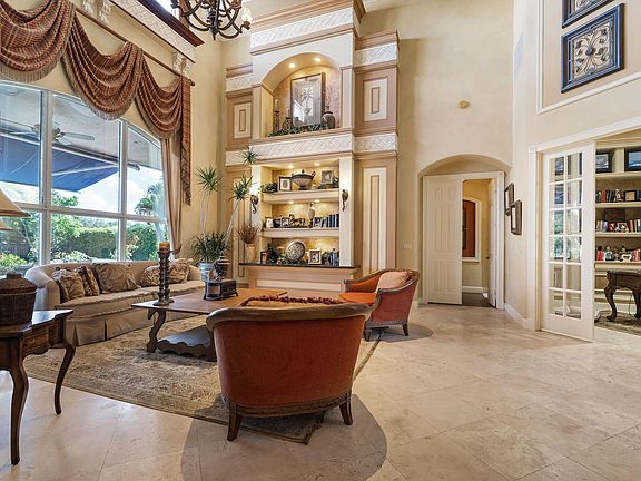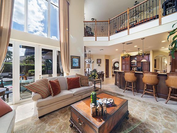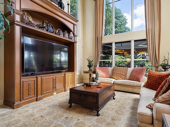 This stunning Waterfront Estate--formerly the Builder's Model--offers 5 Bedrooms, 4 Baths, Den, Loft, 3-Car Garage, and a gorgeous Heated Saltwater Pool with Jacuzzi and Summer Kitchen. Enjoy Soaring Coffered Ceilings, Elegant Crown Molding, and low-maintenance flooring.The main level features a luxurious Primary Suite with dual walk-in closets, dual vanities, separate shower, and soaking tub, plus an additional bedroom and den. Upstairs are 3 more bedrooms and a spacious loft that could become a 6th bedroom. Full hurricane protection with impact windows and doors, UV-protected insulation, and durable elastomeric paint. Perfectly located between the Turnpike and 441, close to top shopping, dining, entertainment, beaches, and the airport.