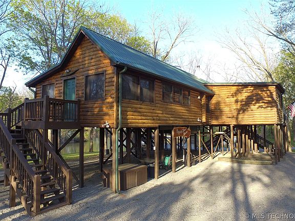 The property is nestled in a private cove that opens into the mouth of the Grand River with navigable access to Lake Hudson. Along with the private cove, Turtle Ranch also contains 1000’ of Grand River frontage. As you make your way down the dead-end road to the property entrance you are greeted by a stunning, remote controlled, custom-built gate that opens to one of the most incredible properties you will set foot on in Northeast Oklahoma. The 30’ x 30’ concrete floored, log-sided garage, with a 10’ lean-to for equipment storage, is located at the property entrance. As you slowly make your way down the driveway you will find the Redneck hunting blind overlooking the stocked pond and nestled among a multitude of oaks and other hardwoods. West of the pond you will find the custom-built skeet house for trap shooting that overlooks the spring-fed cove. This multi-level, custom-built shooting house provides multiple shooting locations and includes an electronic skeet thrower and clay pigeons. Bring your family and friends and fill the bleachers that are located on the North side of the skeet house for a day of friendly competition. Continuing down the driveway you will find the impressive, custom-built, elevated log cabin overlooking your own private cove. This fully furnished 1,500 square foot cabin has been immaculately constructed and the property owner has not spared any expense to create an absolute gem. The rustic charm and details put into this 1 bedroom, 1 bath home is second to none. Along with the loft and multiple beds throughout the home, the new owners have the ability to sleep 8 comfortably. This property offers some of the best duck hunting experiences in a compact piece of land with boundless opportunities in Northeast Oklahoma. With this tract being waterfront; limits of mallards, divers, teals and wood ducks have been taken from the custom-built blind on the bank of the private cove.