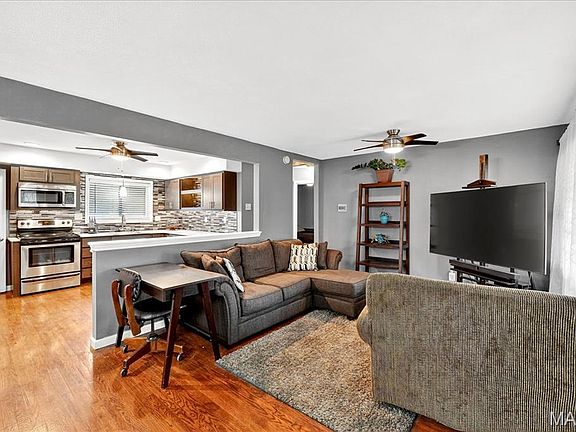 Renovated & Move-In Ready in the Heart of Woodson Terrace! A beautifully updated ranch home offering comfort and style. Perfect for a first home or downsizing, this well-maintained property with quality upgrades features newly refinished wood floors that add warmth and character throughout. Enjoy a stunning new kitchen with quartz countertops, mosaic stone and glass backsplash, stainless steel appliances (refrigerator included), and modern finishes—ideal for everyday living. The stylishly remodeled bathroom (March 2025) complements the home’s fresh look. The primary bedroom features a unique water-inspired accent wall that adds a touch of artistry and serenity. The finished lower level has LVP flooring, two bonus rooms for sleeping areas, craft room or office, a rec room, as well as laundry area with washer and dryer included. The sunroom provides a tranquil retreat while the level, fenced backyard is perfect for entertaining outdoors. Major updates include water heater, gutter guards, wiring, plumbing, and energy-efficient windows (2016) providing lasting comfort. Seller is providing a 1-year home warranty on systems and appliances for extra peace of mind. Conveniently located off Interstate 70 near Lambert Airport, highways, shopping, dining, and parks!
