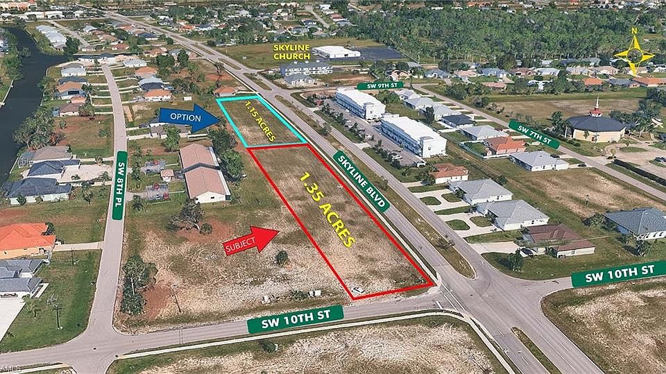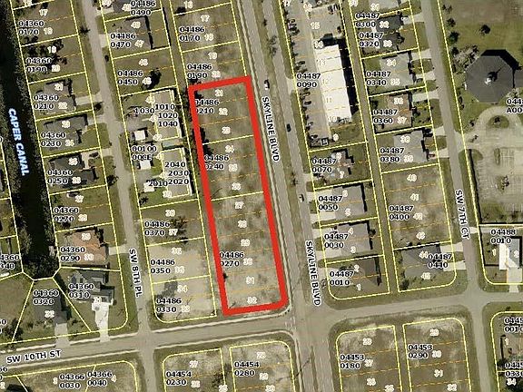 This 1.35± (with option 2.53) acre 12 lot, 3 parcels (with option 21 lots or 8 parcels) commercial lot assemblage offers 480’ (with option 880') of prime frontage along Skyline Boulevard and 125’ on SW 10th Street, with 23,000 AADT for maximum visibility. The northerly 1.15 acres lot is also for sale at $465,000. See ML 225070947. Both packages are Zoned C (Commercial-City of Cape Coral) and Future Land Use CP(Commercial Professional), and are ideally suited for a variety of developments, including retail, fuel/electrical vehicle charge station, office, medical, or mixed-use projects. Strategically located ½ mile south of Island Boulevard, and 2 miles north of Veteran Pkwy, this site offers excellent accessibility and convenience, with proximity to major businesses such as Farmer Joe’s, Publix, Carrabba’s, Bonefish Grill, USPS, self-storage facilities, fitness centers, gas stations, and multiple restaurants. There is currently $25,206 outstanding Utility Assessment due on this property that the Buyer should assume.