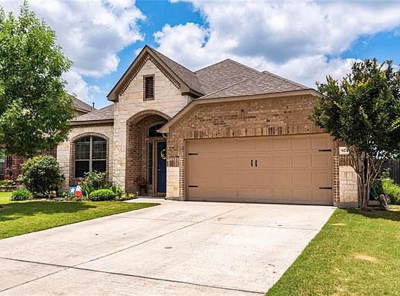 Stunning single story home backing to a greenbelt with loads of upgrades AND ONLY a 5 minute walk crossing one street to the highly ranked Elm Grove Elementary! A wonderful floor plan makes this home one of the builders most popular floor plans with a formal dining space, eat in kitchen, spacious master and a dedicated office, but what sets this home apart is the oversized shaded patio with views of untouched land for you to enjoy around the firepit with friends while the kids enjoy the spacious lot!