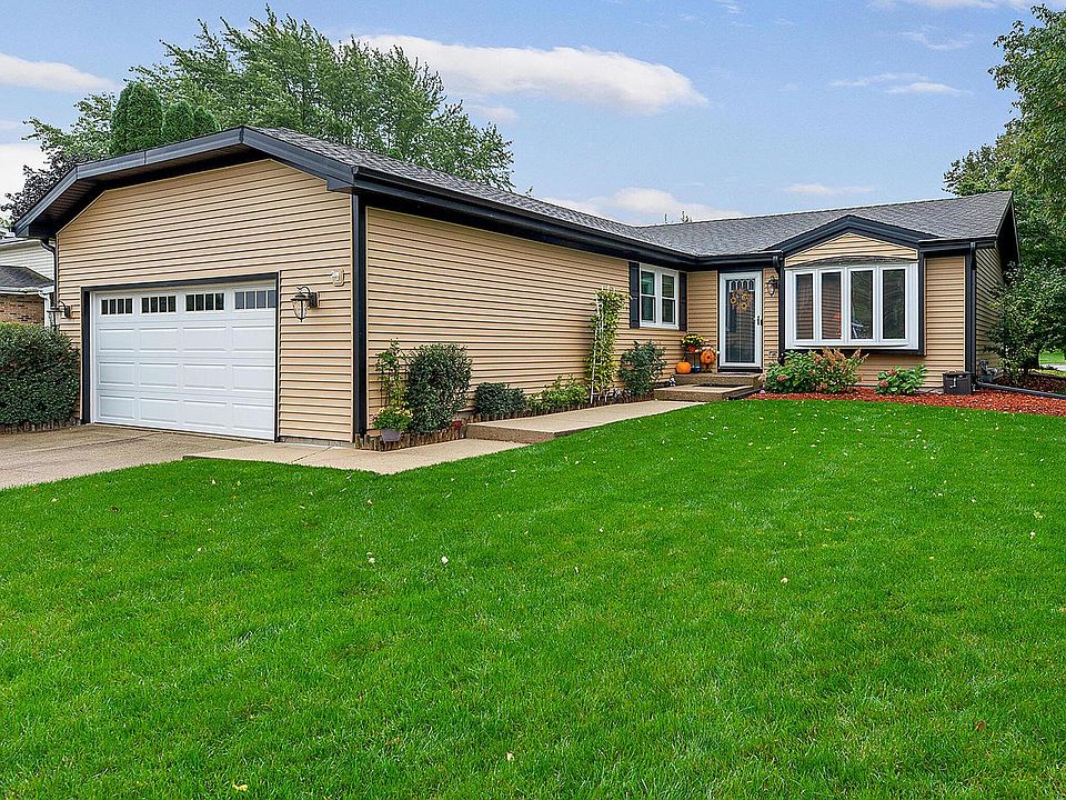 TAKE THE LANDLORD OFF YOUR PAYROLL! 924 Cumberland Court is a meticulously maintained 3-bedroom 2 bath ranch home ready to welcome your family and friends. Inviting curb appeal with a perennial rock garden including red dinner sized plate hibiscus that blooms all summer long. The living room and dining area have tons of natural light from the large bow window with 4 functioning panels for abundant fresh air and a sliding glass door. A cheerful gathering space for everyday life. The centrally located kitchen has ample counter and storage space for creating feasts or simple meals. The spacious 3-season room is the ideal spot for conversations or enjoying your favorite book. The three generous bedrooms have ample sleep and storage space to fit everyone's needs including the primary bedroom with a private bath. Your outdoor living and entertaining space is the fabulously landscaped fully fenced backyard with a paver patio, fire pit, and storage shed. This fantastic home is nestled in a sensational neighborhood located close to schools, train, parks, dining, shopping, and expressways. Roof: 2006 w/ 40-year shingle/soffits/facia 2014: new refrigerator 2017 new windows, furnace and A/C 2021 new dishwasher, washer, and dryer. Whether you're tired of renting, climbing stairs, or right-sizing this is THE ONE!