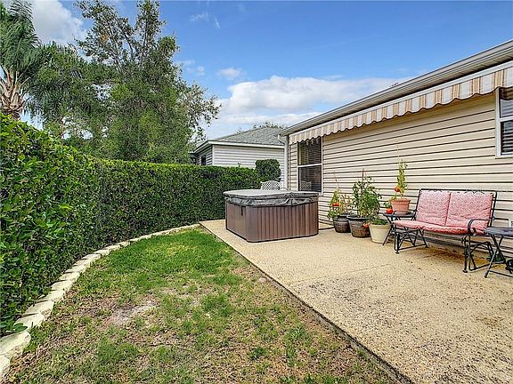 NO BOND on this wonderfully PRIVATE 3/2 Amarillo with 2-Car Garage situated in the centrally located Village of Summerhill! To fully appreciate this wonderful home, be sure to watch the Video and 3-D tours. The ACRYLIC ENCLOSED Lanai opens to a completely PRIVATE back Patio with a REMOTE CONTROLLED RETRACTABLE AWNING and HOT TUB! Beautiful curb appeal with Swaying Palms, Landscaped Curbing, Low Maintenance shrubs, Cozy covered front porch and an inviting GLASS ENTRY DOOR with matching Sidelights! Beautifully UPGRADED, you'll feel right at home as you enter into the main living area with an OPEN floorplan, VAULTED CEILINGS, and TILED Flooring throughout the home - NO CARPET. A wonderful home for entertaining, the Kitchen offers Raised Breakfast Bar (great for casual gatherings), GRANITE Counters, STAINLESS Appliances with Natural Gas Cooktop, TILED Backsplash, Solar Tube, White Cabinets with Pull-Out Shelves, and a Closet PANTRY! The Spacious Master Suite has a Walk-in Closet and the En-Suite bath has been beautifully REMODELED with GRANITE Counters, Dual Rectangular Sinks, upgraded faucets, and the Shower has GRANITE Surround with TILED Accent and a FRAMELESS Shower Enclosure - very nice! The SPLIT Plan is ideal for the occasional guest(s) with 2 Guest bedrooms and Guest Bath with GRANITE Counters and a Tub/Shower combination. The INSIDE LAUNDRY offers additional pedestals beneath the washer & dryer, extra shelving and has direct access to the garage which has a Utility Tub, Metal Attic Stairs, Ceiling Fan and a Freezer, which will convey with the home. So many extras such as DESIGNER FANS, UPGRADED LIGHTING, 3 SOLAR TUBES, TANKLESS WATER HEATER, A/C was REPLACED IN 2015, WATER FILTRATION SYSTEM, MOTION SECURITY LIGHTS (front and back), ARCHITECTURAL SHINGLES, BLINDS, WINDOW TREATMENTS, and there is even a small floor mounted safe! Want more? The front and back patio, and the lanai have River Rock Flooring! Tax line reflects property taxes only. CDD line reflects combination of annual maintenance and fire district. NO BOND! What are you waiting for? If not now, when???
