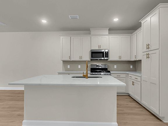 Welcome home to Nexton's sought-after 55+ community of Hammock Walk by Ashton Woods. This 2 bedroom 2 bathroom home features 9' ceilings and wide-plank LVP flooring. The kitchen shines with quartz counters, gold fixtures, warm neutral shaker cabinets and stainless steel appliances. With bar seating and an extended living room you have plenty of room for guests. The main level is complete with a primary suite, secondary bedroom, full guest bathroom and covered patio. Exceptional quality design and construction in a prime location. This home will be ready in December. Call today for more info!